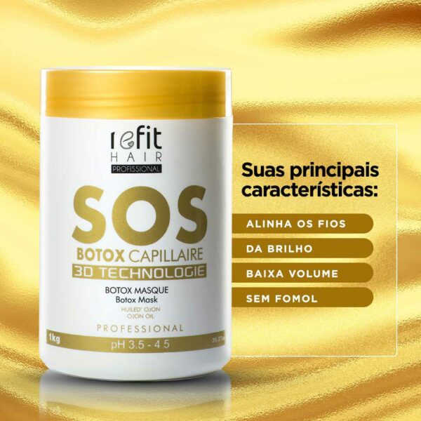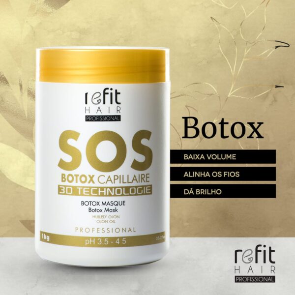 Botox, Liso PerfeitoBaixa volume, alinha os fios e dá brilho. O botox da Refit é um reparador da fibra capilar que promove disciplina dos fios, toque de maciez e maleabilidade. Reduz significativamente o volume e trata os cabelos danificados, ao mesmo tempo proporcionando fios mais lisos e devolve movimento para os cabelos.