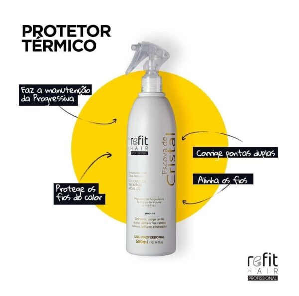 Escova de CristalA Escova de Cristal da Refit Hair Profissional é um protetor térmico e um desfrizante eficaz, elimina o friz e proporciona fios disciplinados, Nutre e hidrata profundamente os fios além dar umbrilho incível, tronando-os macios e maleáveis.
